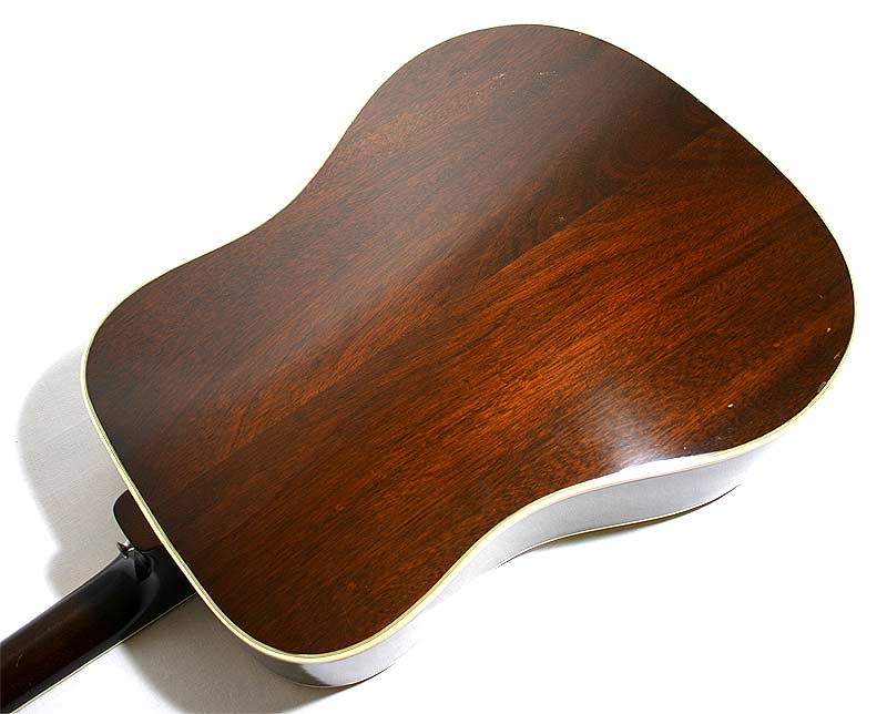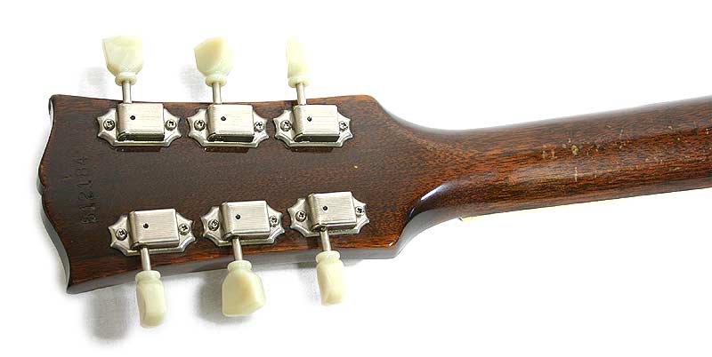 Gibson had the reputation of having an easily broken neck joint, so from 1969 a wooden volute was added to the back of the neck which strengthened the neck where it joined the headstock to avert breakage. To further increase the strength, the neck woods were changed from mahogany to a three-piece maple design. This is a non-volute model with a very slim mahogany neck. No breaks on this.