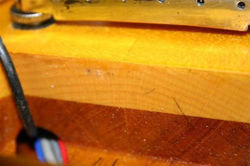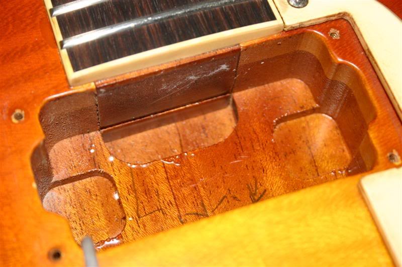 Traditionally Les Pauls have a book-matched flamed maple top (two pieces split) sitting on a mahogany body. The balance of maple-to-mahogany thickness and ratio is important to get that classic Les Paul sound. On closure inspection of this maple top the centre line of the flame does not match the maple cap under it.