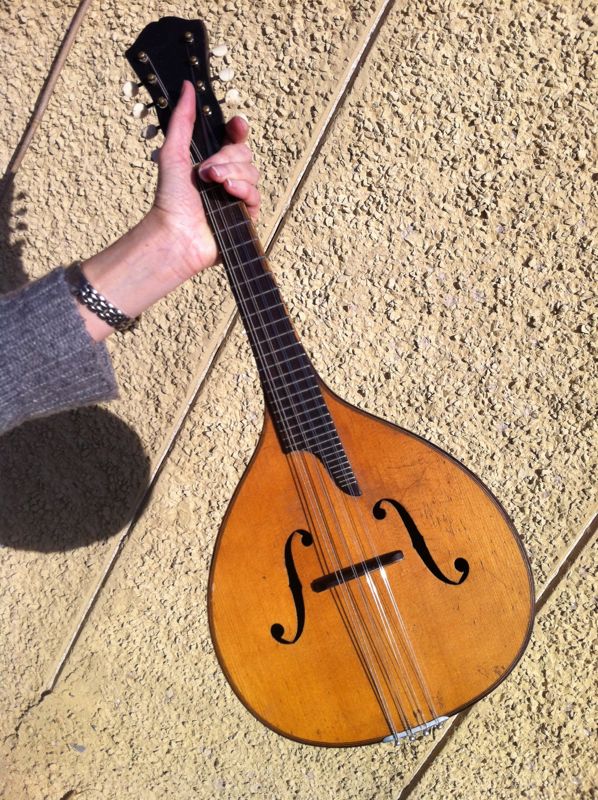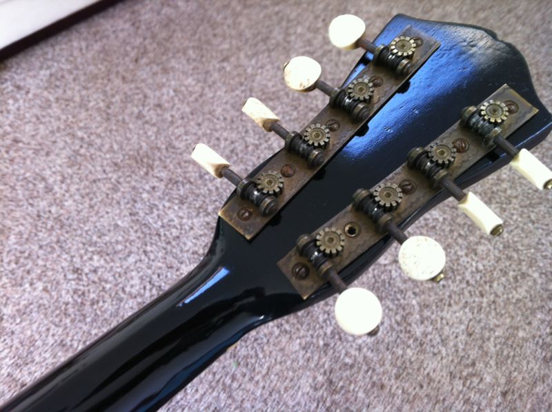This is an old flat back style mandolin with a maple top. The tuners appear to be ivory. I do not know the makers name. This mandolin had a little accident breaking the neck into two pieces.