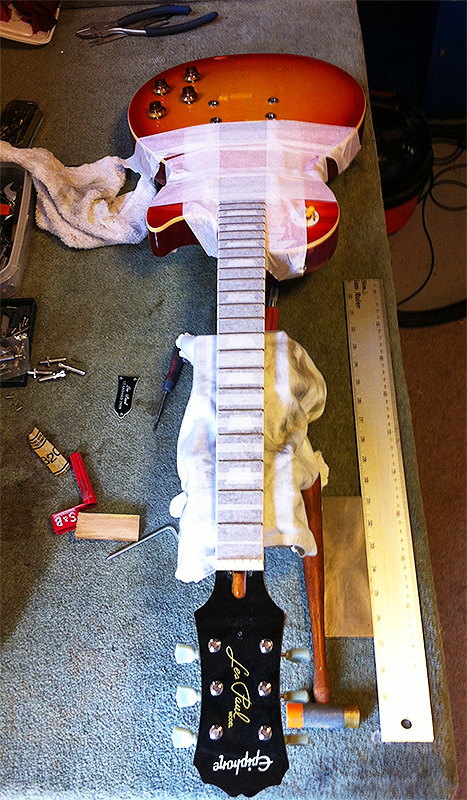 This epi required the usual fret dress and nut cut which had been omitted at the factory.