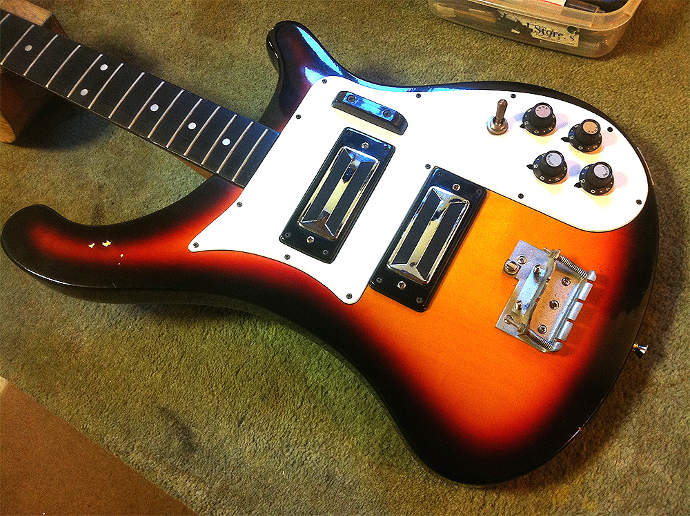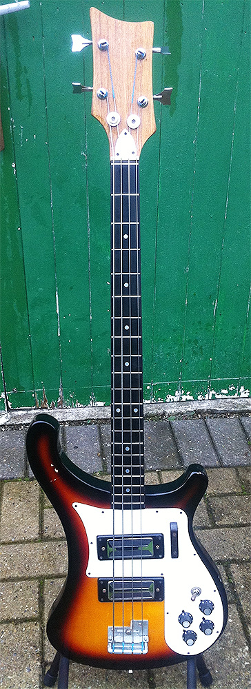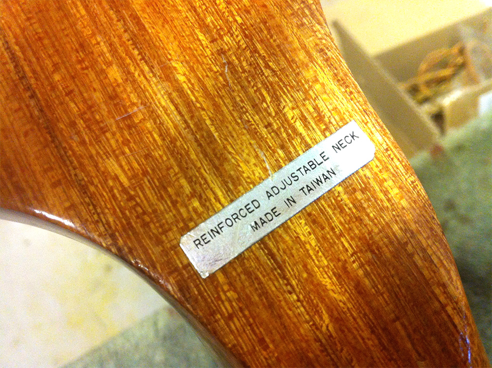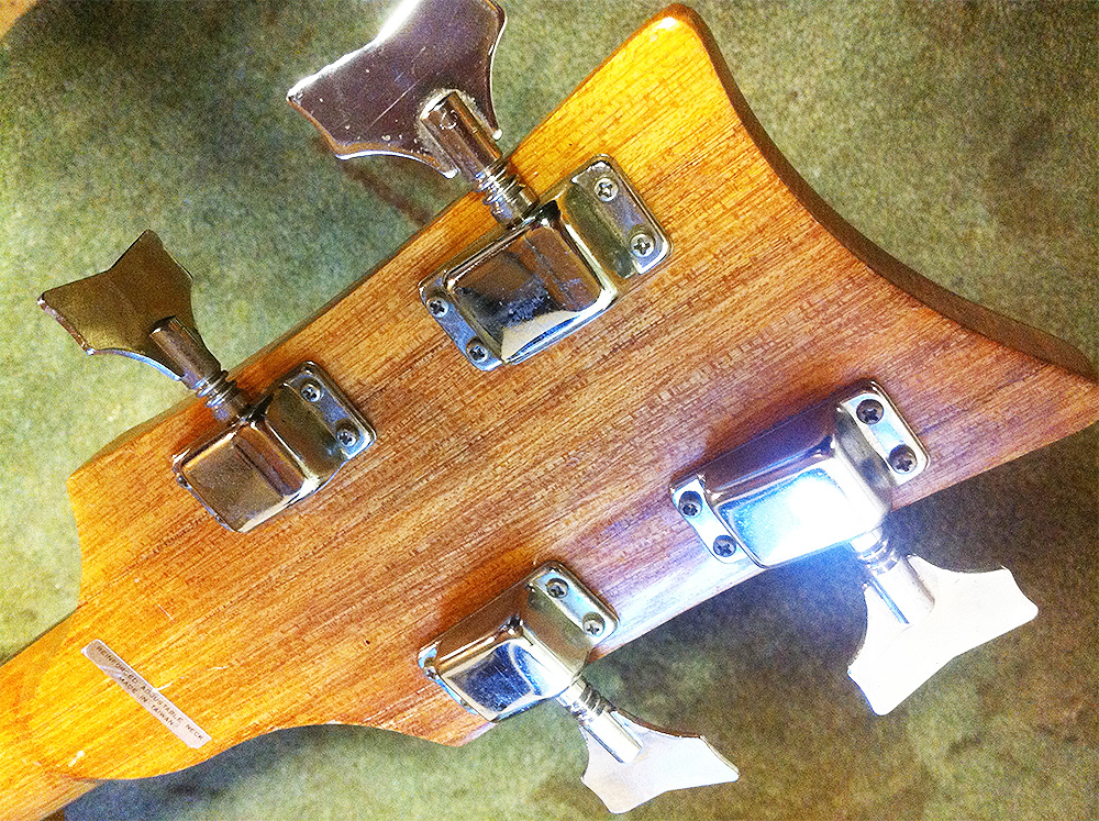 This is a 30″ short-scale bass made in Taiwan in the early 70s. Reminiscent of the Rickenbacker 4001, there is a lot of conflicting information about these instruments on the web. Steve Staples (of International Vintage Guitars) will tell you that these were made in the USA at the end of the 60s. Here’s why they weren’t.