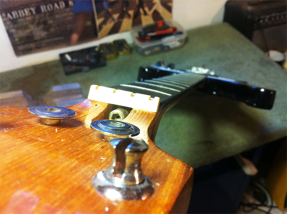 This came in requiring quite a lot of work to get it playing properly. Work undertaken included; neck reset, fret level and dress, nut and zero fret work and an overhaul of the electronics.