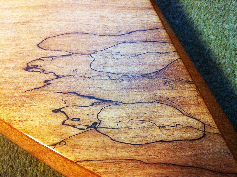 Spalted maple – This most often occurs when different fungi found in the wood interact and put up barriers (zone lines) to protect their resources.