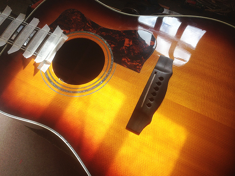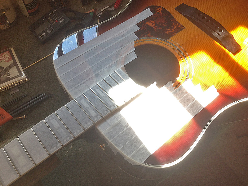 Prepping a Guild D-55 for a deluxe setup and fret dress.