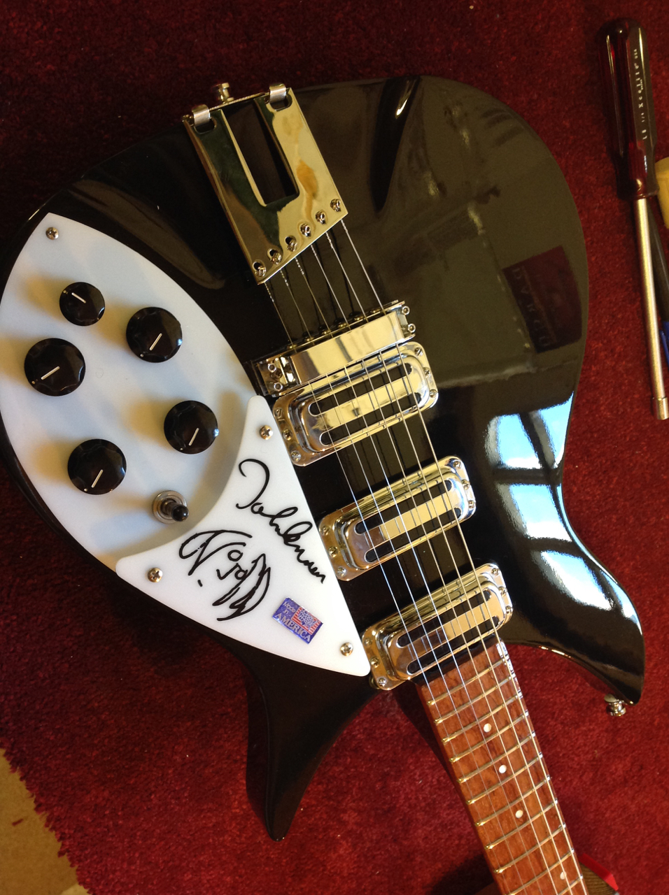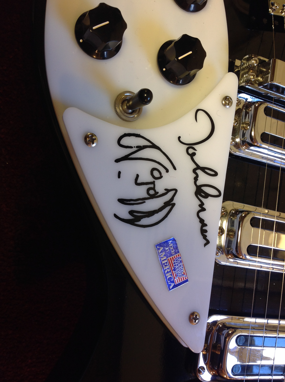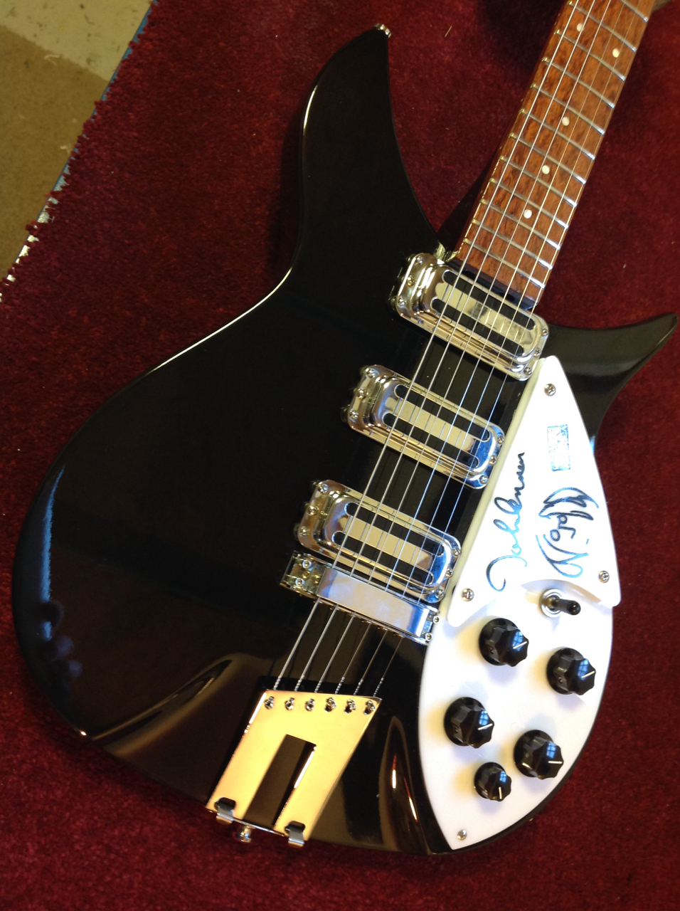 Part of a very collectible series of commemorative instruments made in 1990, here is the Rickenbacker 355JL John Lennon model. This is a 6-string instrument in a Jetglo finish, built with an Eastern Hard Rock maple body, rosewood fretboard with dot inlays, and three toaster top Rickenbacker pickups, this 355JL having a trapeze tailpiece. A cool quality of the John Lennon collection is that Rickenbacker located some original tooling which insured insure faithful recreation of the headstock, pickguard and nameplate.