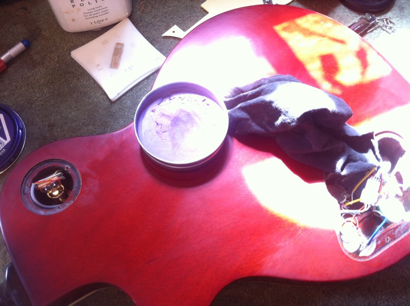 Durable and shiny as it is, I’m not a fan of poly finishes. Dulling the finish with some 2000 grit and soap.