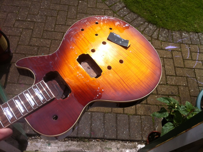 When this was brought in to me it was an absolute dog of a guitar, totally unplayable, sharp fret edges and buzzing like the proverbial. But! after a days work it turned into a very playable LP copy.