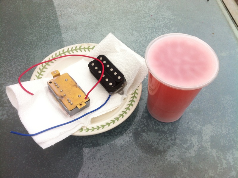 I was going to throw these away but I’m curious to hear what they sound like after being wax potted. Neck reads 8.2k and the bridge 8.7k.