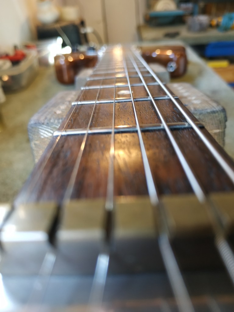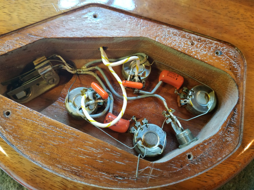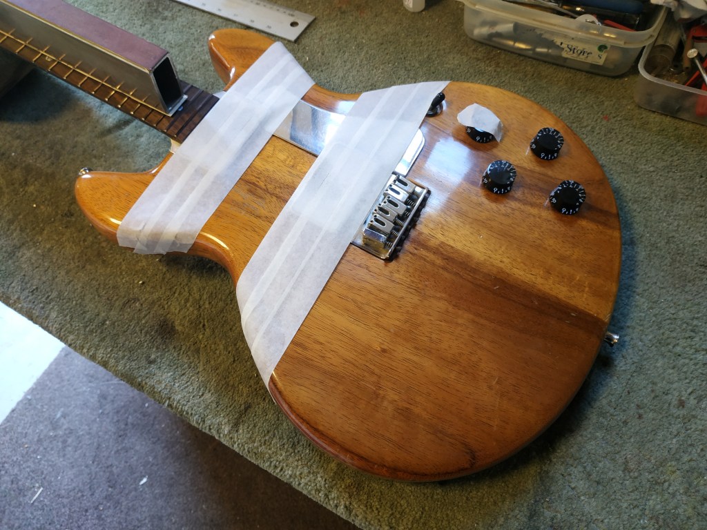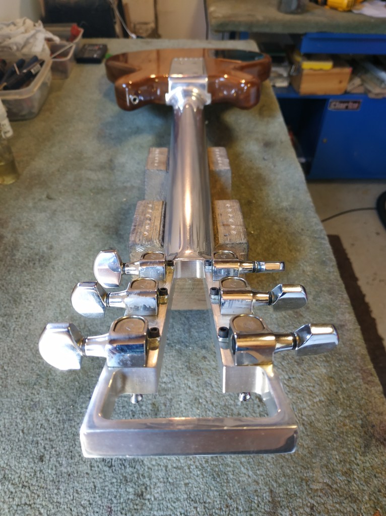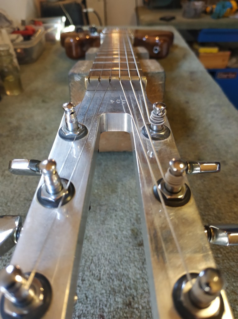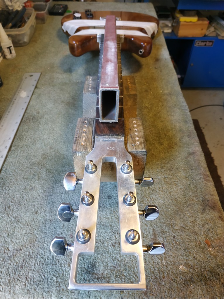 From California, a 1975 Travis Bean TB1000S. Machined aluminium neck with no trussrod. Solid koa body. A super heavy electric guitar with seemingly infinite sustain.